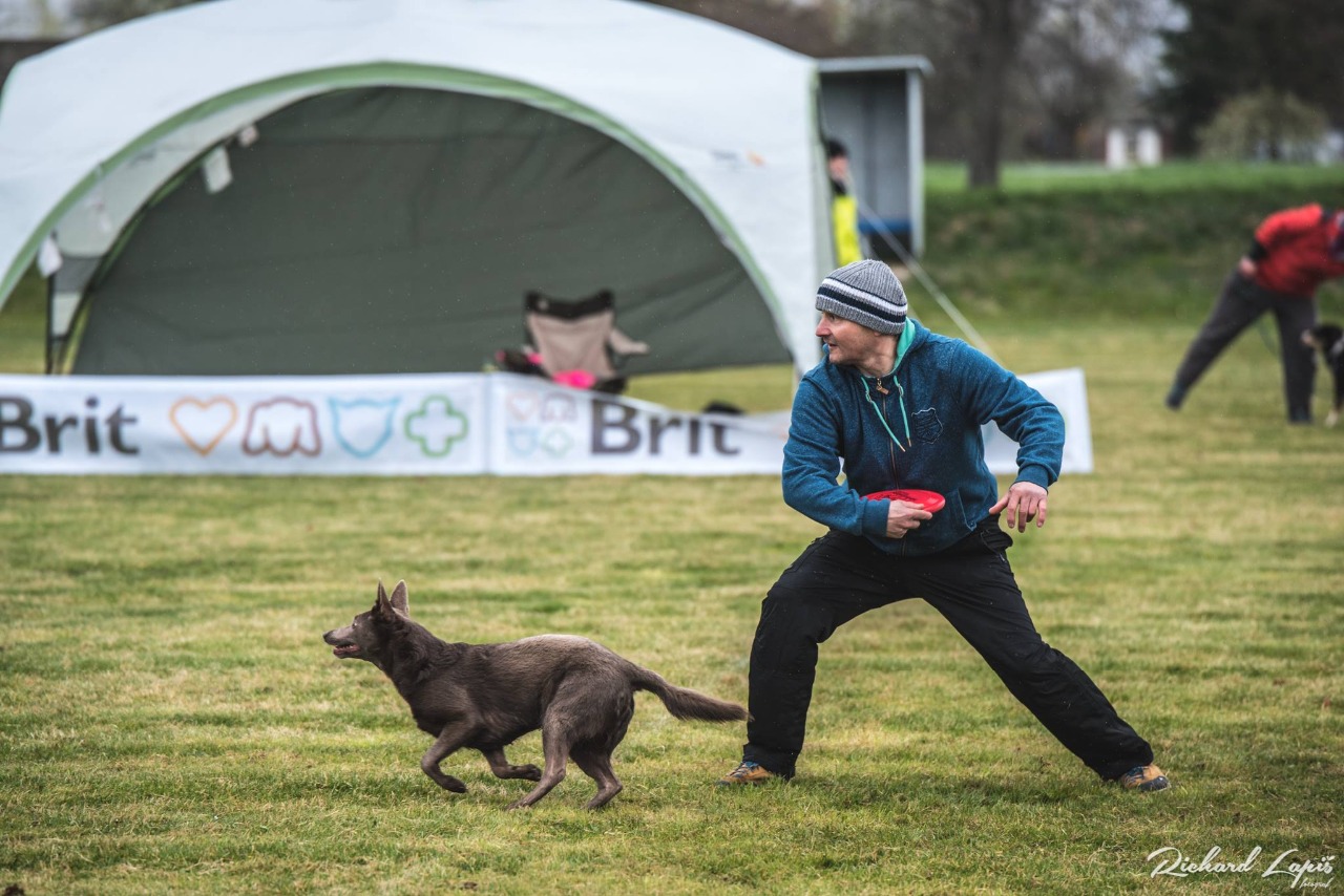 Objevil totiž disciplínu, která jej opravdu zaujala. Dogfrisbee. Zprvu šlo jen o takové "domácí házení". Psiska šla do všech pokusů s nadšením a ochotně páníčkovi odpouštěla špatné hody. Táta se pomalu z dlouholetého pozorovatele našeho psího soutěžení měnil v aktivního závodníka. Jak se to stalo...?
