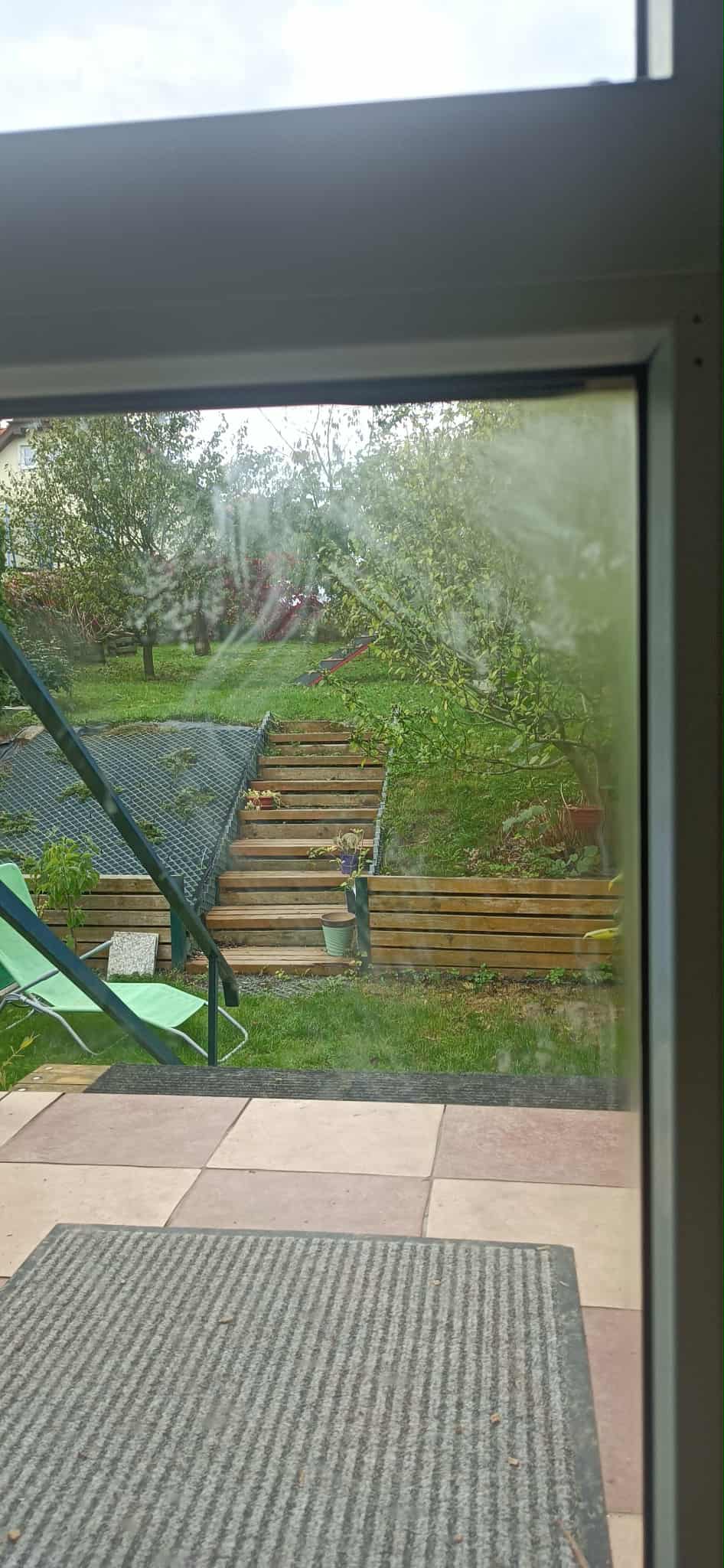 Řeč je o konkrétních balkónových dveřích. Našich. Z obýváku. Zde totiž nejčastěji vypouštíme ven naši smečku. Zvířata nejdříve poťapkají po dlouhém balkónu, poté šupito presto po dřevěných schůdcích na travnatou zahradu, aby zde vykonala svou biologickou potřebu, či se jen tak proběhla kolem plotu. Předpokládám, že v tuto chvíli možná začínáte tušit, kam mířím.